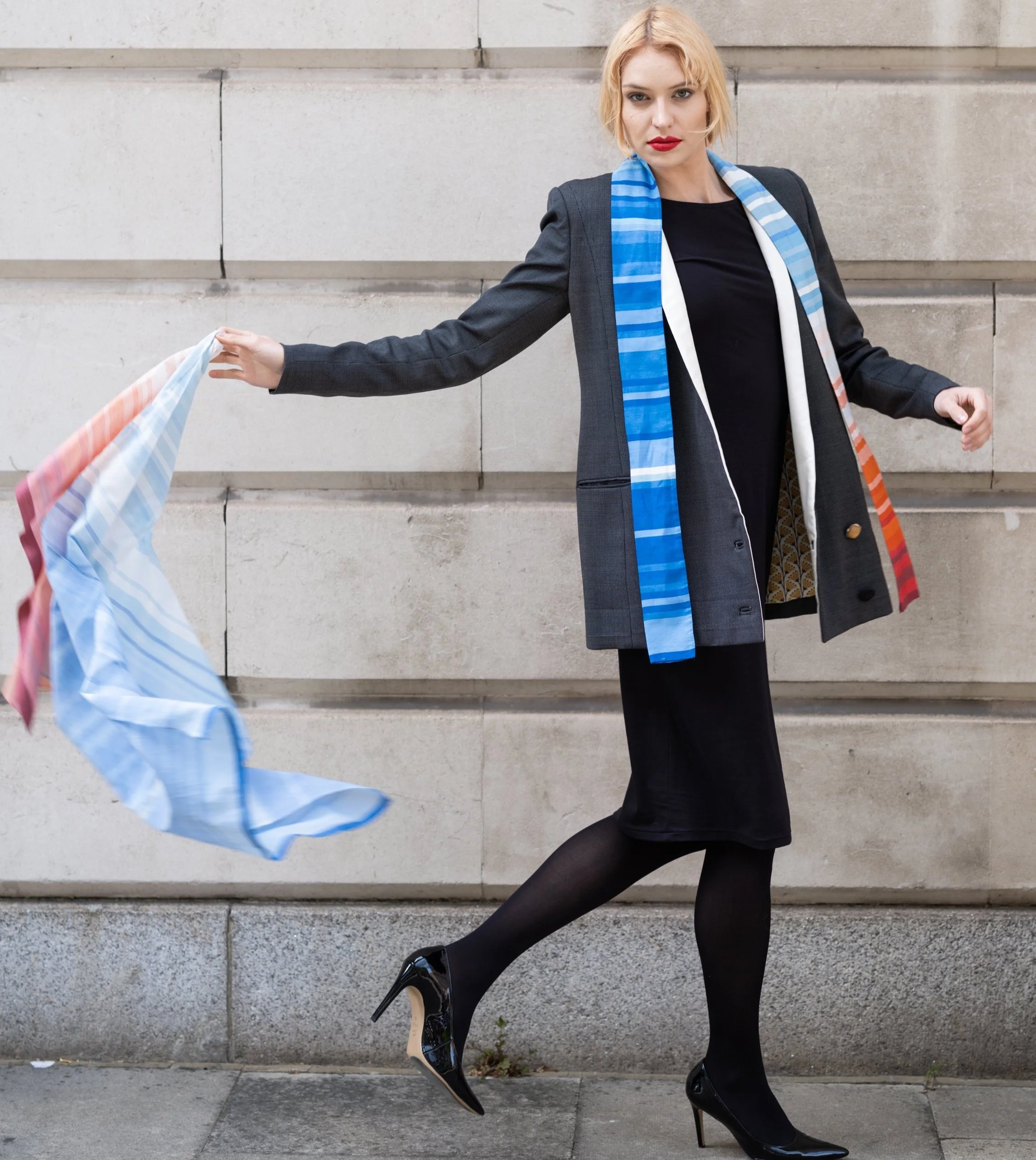 The Climate Stripes visual has been turned into a striking sustainable, hand crafted fabric for the TAMMAM 2025 accessories collection.